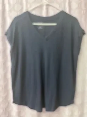 Soft, relaxed V-neck top in a versatile dark navy color. Lightweight, breathable fabric for all-day comfort. Easy to style for casual or polished looks. Machine-friendly care for everyday wear.