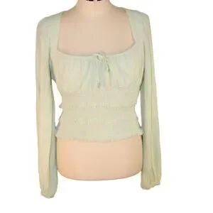 Free People Lolita Mint Green Smocked Square Neck Top Long Sleeve M