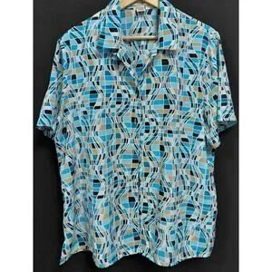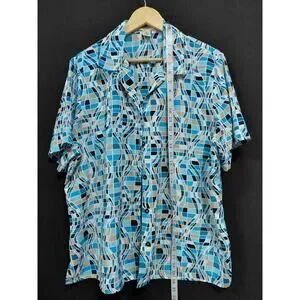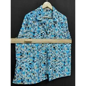 Notations Woman Blue Geometric Print Sleeve Blouse Size 1X-See Measurements