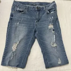 M Jeans by Maurices Womens Jeans Blue Distressed Size 14 Regular Mid Rise