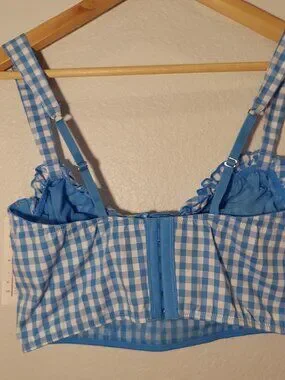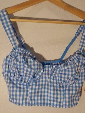 NWT Colsie Blue Gingham Bustier Crop Top Size M