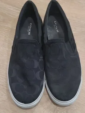 COACH slip-on sneakers with tonal signature C jacquard. Elastic side gores for easy on and off. Padded insole for comfort and rubber outsole for traction.