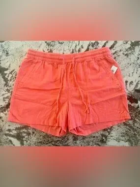 Women’s Linen Casual Drawstring Shorts - Coral Pink