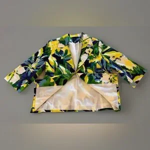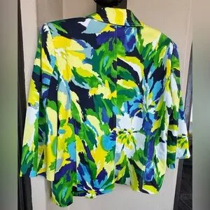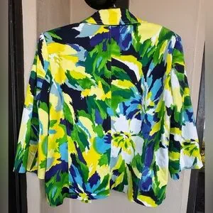 Molly & Maxx Multicolor Abstract Print Blazer 3/4 Sleeve Collar Lined Large