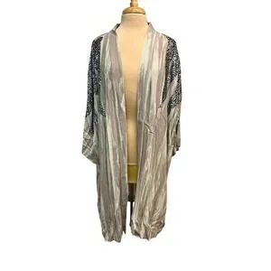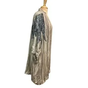 Haute Hippie Kimono Women 1X Taupe Excellent Sequin Embellished Open Front