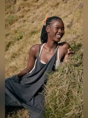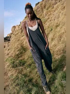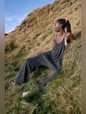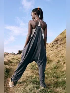 A perfect match for light workout days, or for layering on post-sweat sesh. This soft and comfy onesie features a slouchy, relaxed-fitting design with a dropped crotch and convenient side pockets.