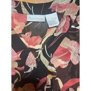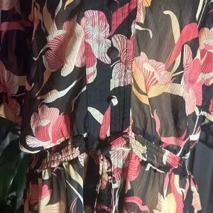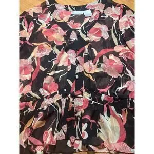 Worthington sz12 women’s sheer floral blouse ruffle sleeves fit flare waistline