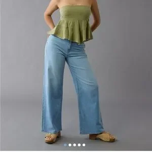American Eagle 000 curvy dreamy drape wide leg jeans NWT FLAW