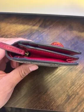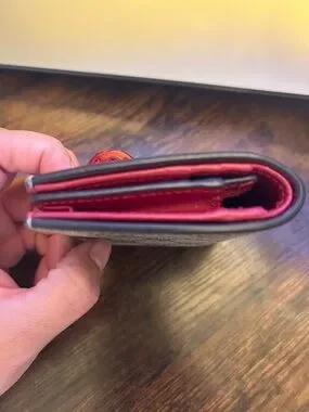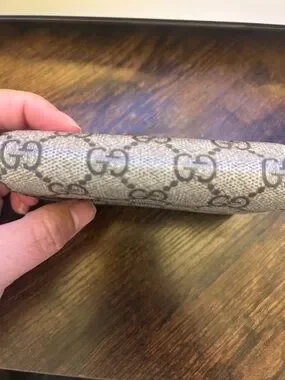 Gucci Beige GG Monogram Card Holder with Red Jeweled Cherry