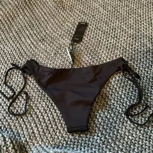 This is a brand new Tavik bikini bottom. Tie sides. Solid black color. Minimal coverage. Still has a hygienic liner.