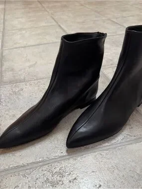 NWOT Clizia pointed toe ankle boots, European size 40. Black. Leather upper and lining. 1 cm heel and back zipper. Rubber sole. Very comfortable fit. These sold new for over $400 and are on sale now for $123.