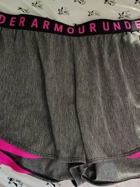 Under Armour Gray Athletic Shorts with Pink Trim
