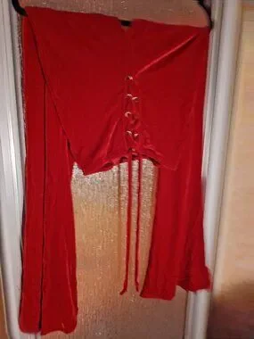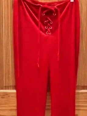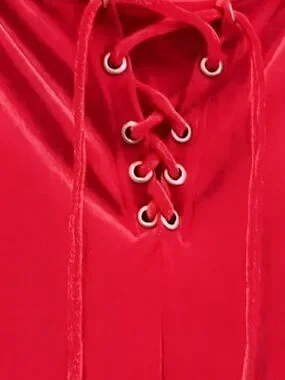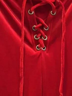 Red Lace Up Velvet Bell Bottom Pants