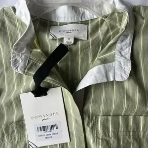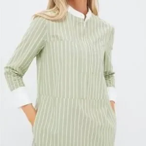 Pomander Place Sage Green and White Striped Shirt Dress