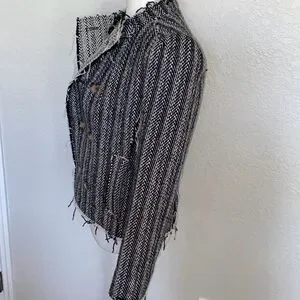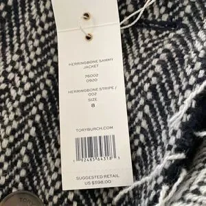 NWT Tory Burch Sammy Herringbone Tweed Raw Edge Double Breast Jacket Sz 8