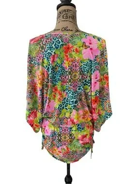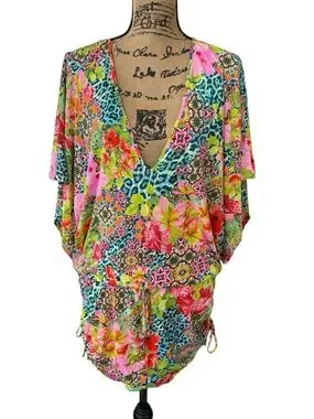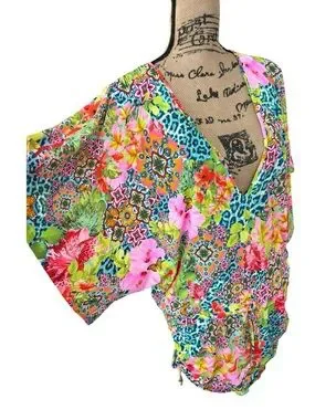 Luli Fama Cabana V-Neck Dress Swimsuit Cover-Up Floral Tropical Size Small