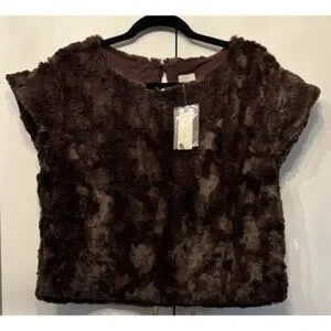 NWT Size L- Anthropologie Maeve faux-fur tee in Chocolate (NWT US$ 120)