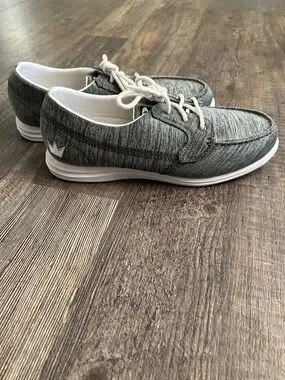 Brunswick Karma Women’s Knit Lace-Up Bowling Shoes in Gray and White