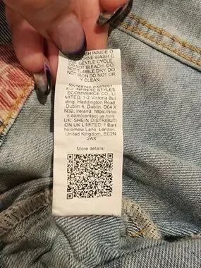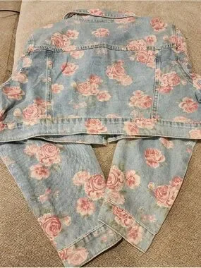 SHEIN Light Blue Denim Jacket with Pink Rose Print