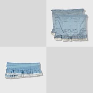 Unbranded Ruffle Curtains Home 29x24 Blue Cottagecore Lace Trim Valance Set