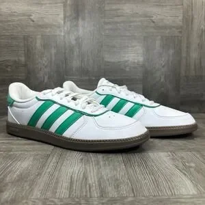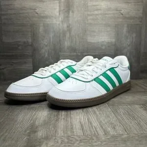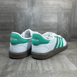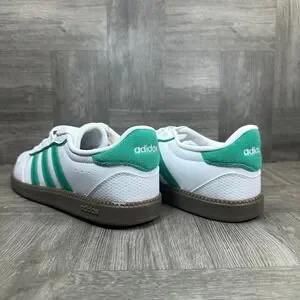 These Adidas VL Court 3.0 sneakers offer a timeless low-profile silhouette with a clean white leather upper and vibrant green accents. The classic gum rubber outsole provides excellent traction and a vintage-inspired look, making them perfect for everyday wear.