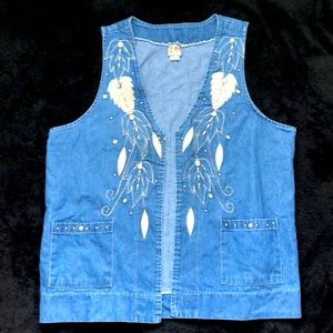 Cactus Size L Denim‎ Open Front Vest Vintage