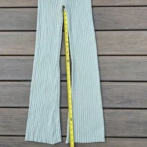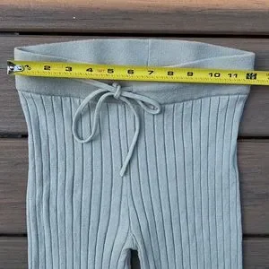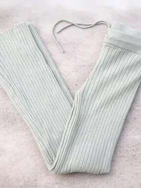 Beige Light Sage Ribbed Knit Lounge Pants Wide Waistband Flare Cozy Minimal