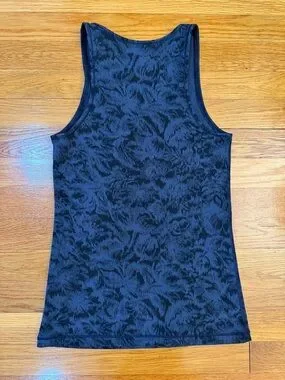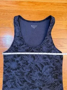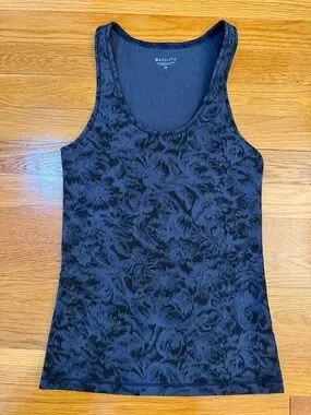 Athleta Scoop Tank Texture Frosted Floral Black/Blue - Size XS Tank Top Shirt