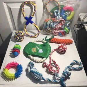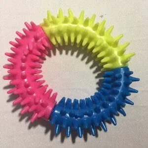 Multi-Functional Toys: Rope knots clean teeth by flossing away plaque; rubber spike ring massages gums; squeaky frisbee adds fun to outdoor play.