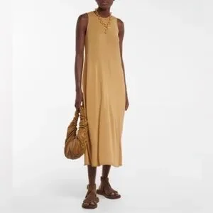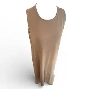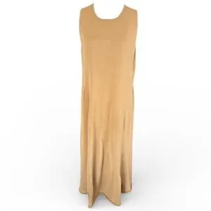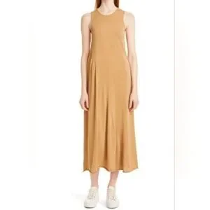 Vince Pale Walnut Shirred Cotton Tank Maxi Dress Sz L
