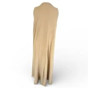 Crafted from 100% breathable cotton, this minimalist silhouette features a softly draped, fluid fit with subtle shirring and a graceful full-length hem. The warm neutral hue makes it an ideal capsule staple — equally chic styled with leather slides, sneakers, or layered under a blazer.