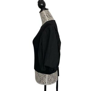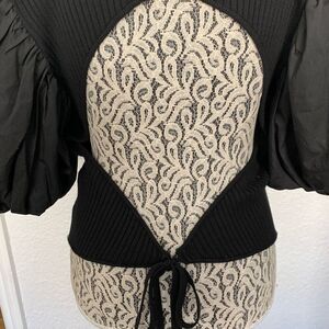 En Saison Maxime Puff Sleeve Ribbed Knit Backless Tied Blouse in Black Size M