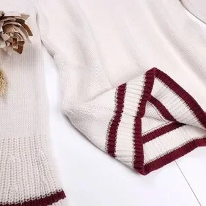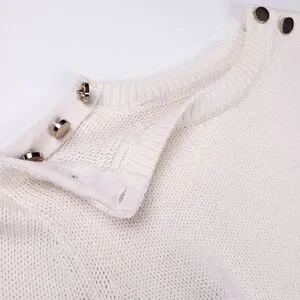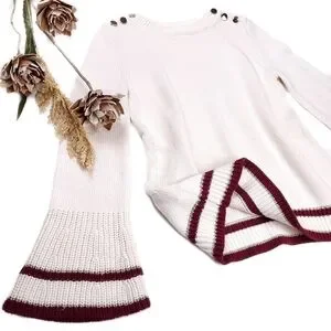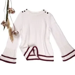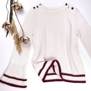 New Loft Cream Red Trim Gold Button Bell Sleeve Sweater Sz Xs