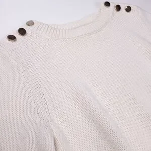 Loft Cream Red Trim Gold Button Bell Sleeve Sweater Size X-Small