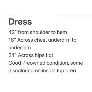 Good pre-owned condition with some yellowing/discoloration on the inside of the smocked bodice area as shown in photos. No other major flaws. please see photos for details. Thank you!