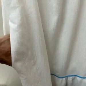 Vintage White Smocked House Dress Nightgown Pink Blue Trim Pockets USA Small