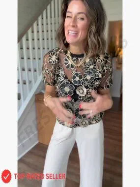 Brand new, never worn, and in flawless condition — this elegant sheer lace blouse with 3D embroidered floral applique delivers a beautiful, elevated look perfect for brunch, office chic, or a night out. The fabric is breathable, comfortable, and designed for effortless wear.