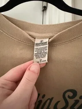 Magnolia crewneck in a warm tan shade. Dark green Magnolia Silos logo across the chest. Soft-feel fabric and classic crewneck silhouette. Ideal for casual layering and everyday wear.
