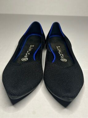 Rothy's Size 10 Black The Point II Knit Ballet Flats with Blue Trim