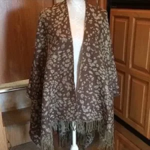 Leopard Print Fringe Pashmina Reversible Wrap Poncho