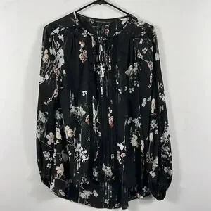 White House Black Market Floral Blouse Size 2 Black Long Sleeve Chiffon Top