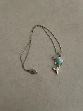 Silver Dolphin Pendant Necklace with Turquoise Inlay