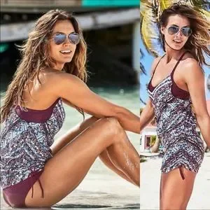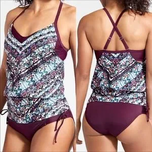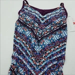 Marrakesh pattern with side ties can be worn with ties up as a tankini or down as swim dress