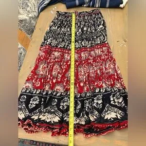 Bohemian Floral Red and Black Maxi Skirt One Size