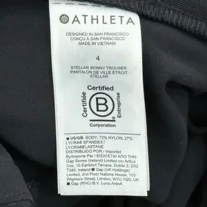 Athleta Stellar Skinny Trouser Ankle Pants Womens 4 Black Commute Work Travel
