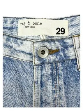 RAG & BONE Maya Printed Tencel Shorts Size 29 Denim effect print Tencel Lightweight Belt loops High-rise cut Two front slant pockets Button and concealed zip fastening at front Non-stretchy fabric Mid-weight fabric Measurements: *Size 29 *28.5" Waist (flat lay across x 2), 12" Rise, 18" Across hips, 5.6" Inseam, 16.5" Length Materials: *100% Tencel Quality: *This item is in great condition! Double check photos to be 100% sure!