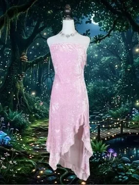 Urban Outfitters, Silence + Noise, NWT, Velvet, Crushed Velvet, Strapless, Asymmetrical, Ruffle, Midi, High Low, Strapless, Y2K, Fairy, Grunge, Fairy Grunge, Boho, Bohemian, 90s Fashion, Formal, Casual, Cocktail Dress, Party, Prom, Holiday