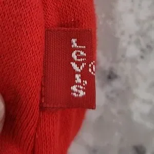 This brand new, super soft kid's sweatshirt from Levi's is sure to keep your little one cozy! Bright, bold red with shiny silver logo, Size 4, or youth XS.