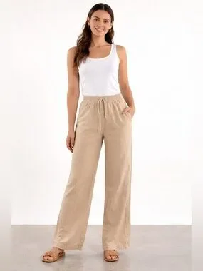 Effortless, elevated basics. These Reitmans wide-leg pants feature a soft neutral beige tone that pairs with everything, with a relaxed drape that gives that chic, minimal look. Lightweight and breathable with an elastic waistband and adjustable drawstring for comfort and ease.
