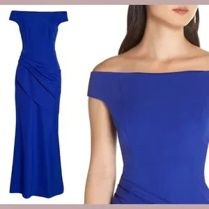 NEW ELIZA J [SZ 12 ] Draped Off The Shoulder Gown In Cobalt